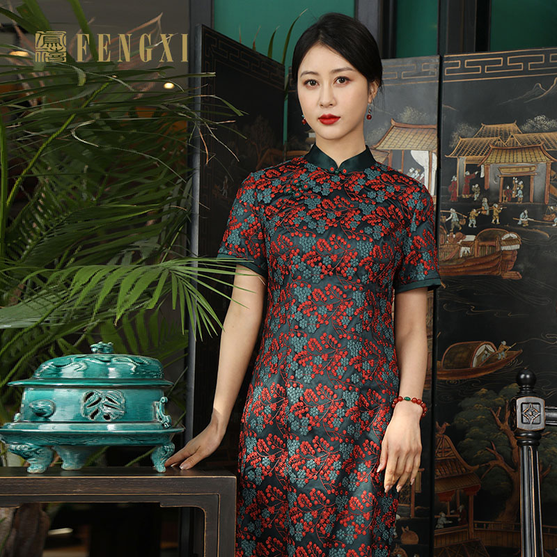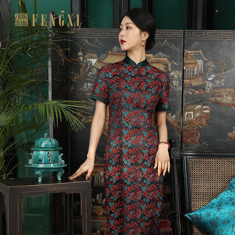 凤禧旗袍长款蕾丝复古婚庆宴会气质高端改良礼服妈妈装女新款2025