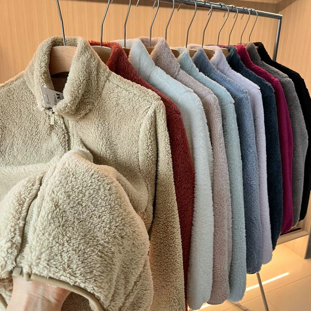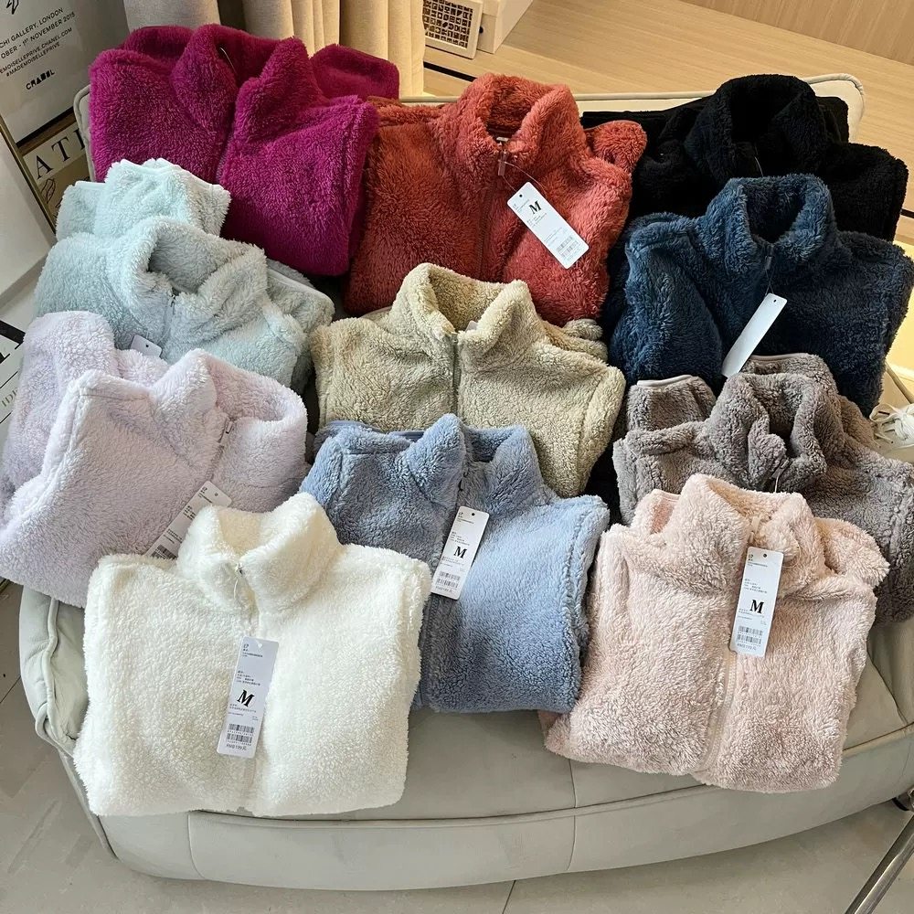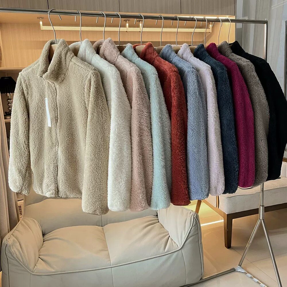 日单 多巴胺穿搭 2025年秋冬女装立领长绒摇粒绒拉链茄克夹克外套
