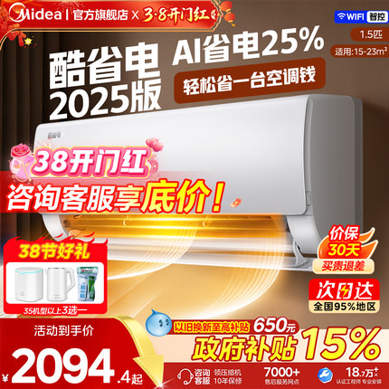美的酷省电空调2025版大1.5匹2匹Pro挂机新一级能效变频官方正品