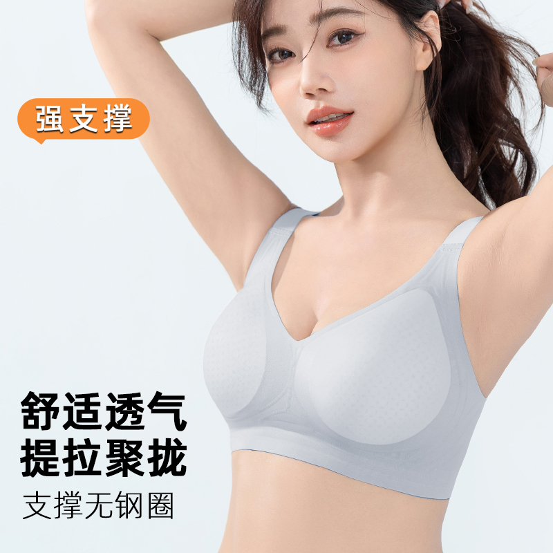 夏季凉冰丝大码文胸无痕薄款无钢圈睡眠内衣大胸显小胖mm聚拢胸罩