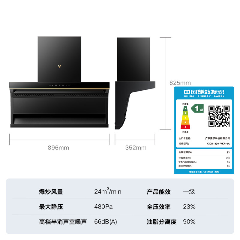 云米顶侧双吸油烟机抽风机