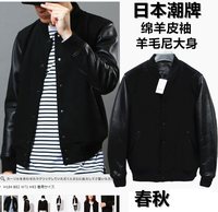 日单潮范利器!春秋头层绵羊皮真皮皮衣羊毛呢棒球服皮夹克
