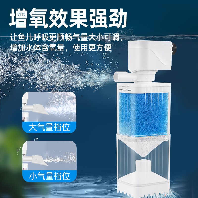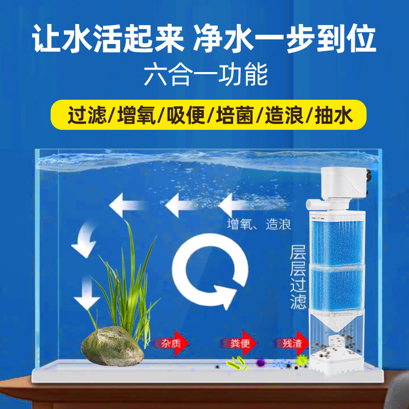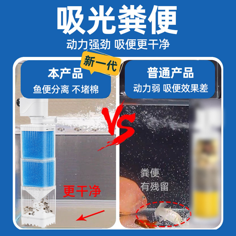 鱼缸过滤器内置净水循环增氧三合一小水泵鱼马桶粪便分离器超静音
