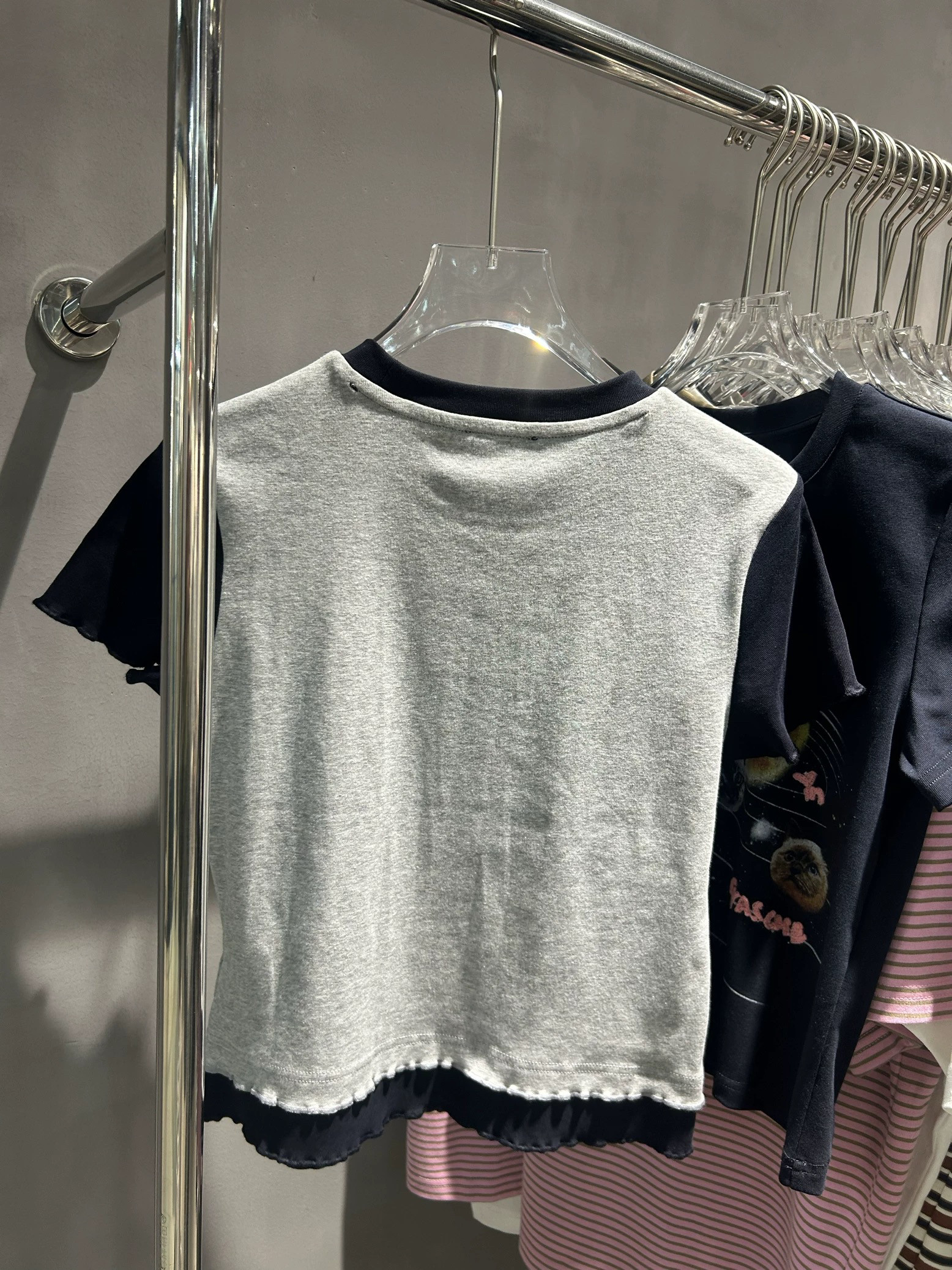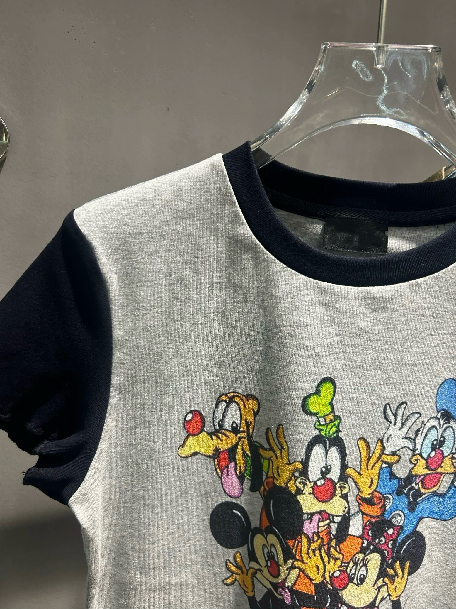 特价清仓 时尚设计感趣味卡通印花撞色短袖T恤女修身上衣