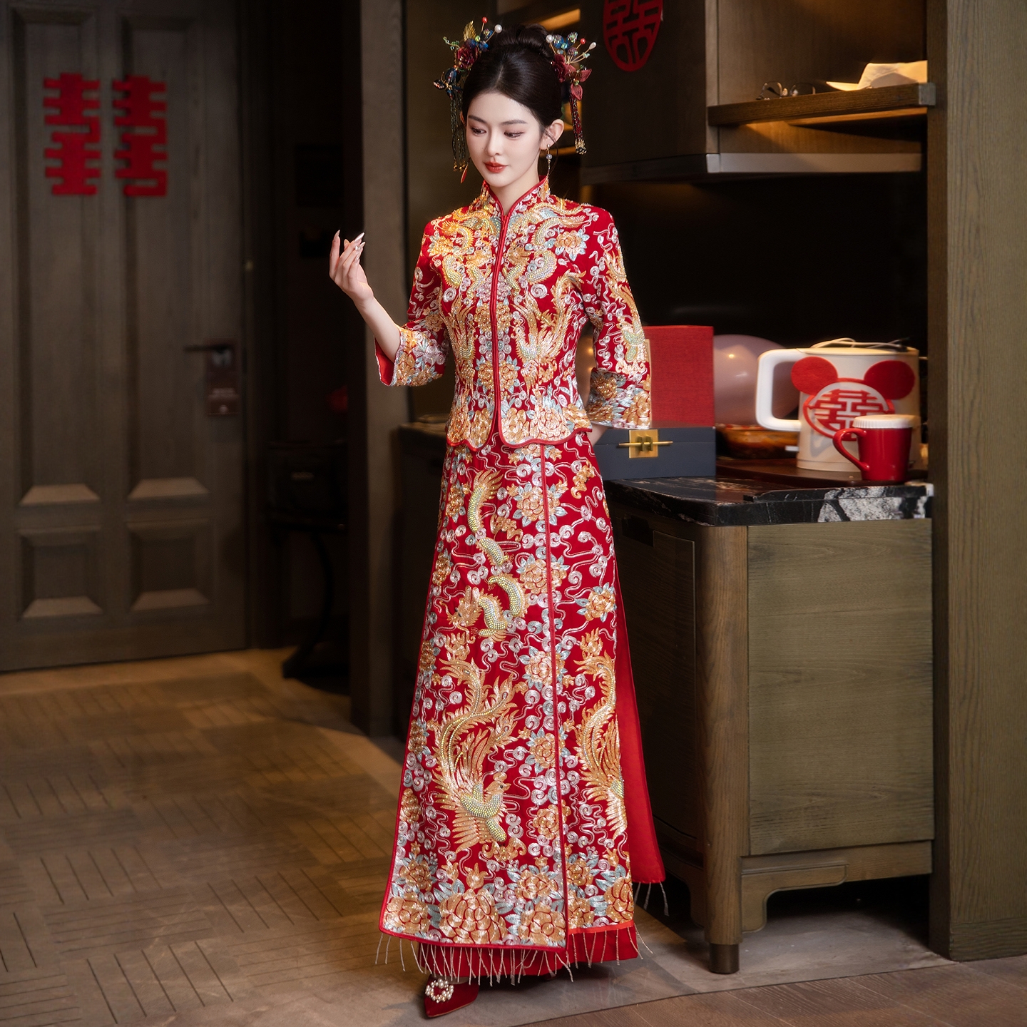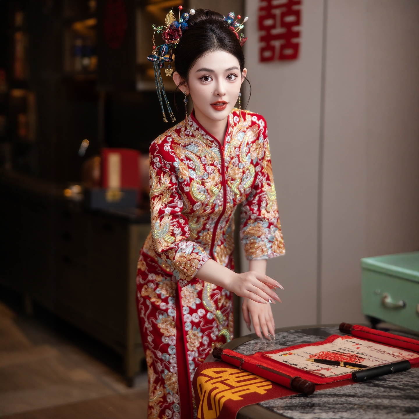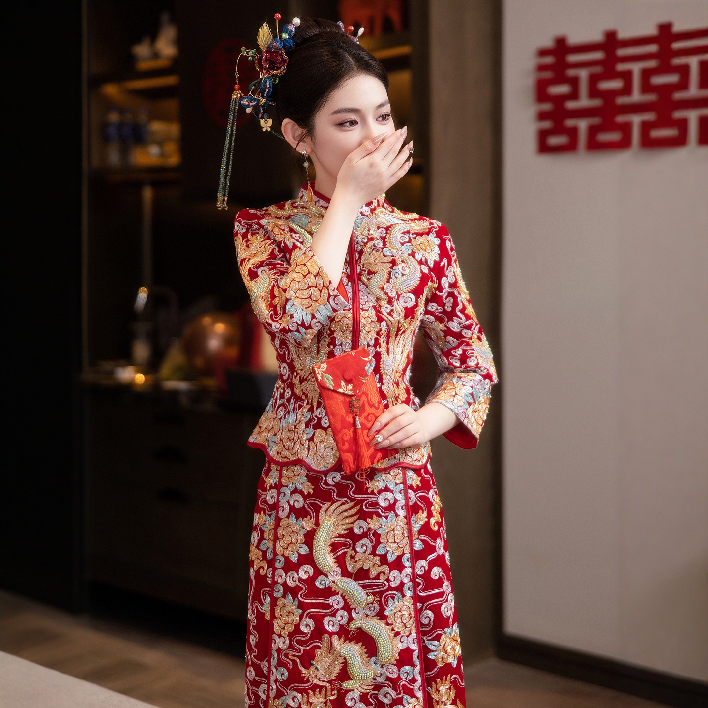 海棠记龙凤褂结婚嫁衣中式礼服新娘敬酒服高端婚服显瘦秀禾服冬新