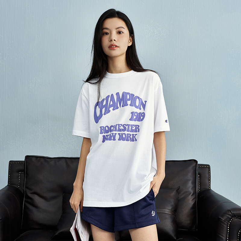 Champion冠军短袖t恤男2025夏季新款情侣纯棉圆领刺绣宽松印花女