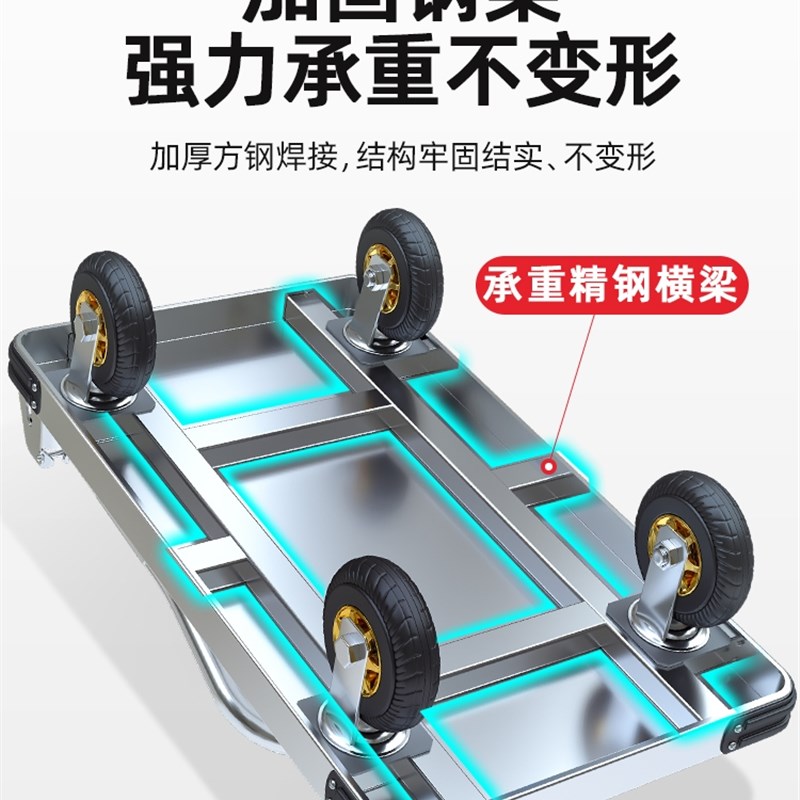 加厚钢板静音平板车手推车搬运车小推车拉货折叠轻便家用办公拖车