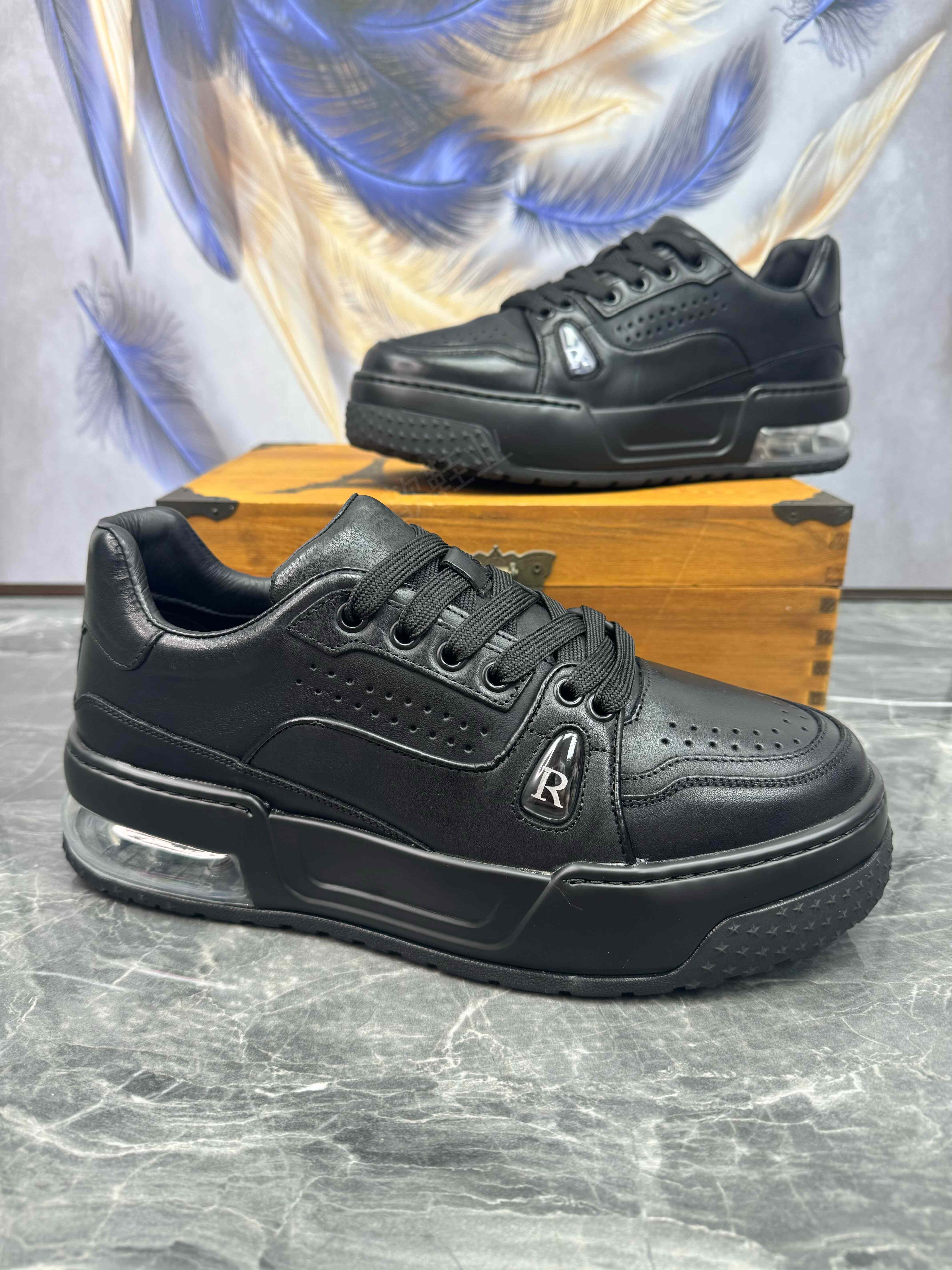 男鞋2025秋季新款头层牛皮轻便气垫厚底潮流真皮透气运动休闲板鞋