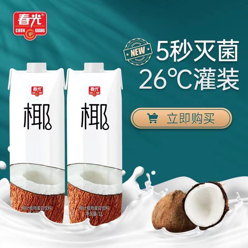 春光椰子汁1L新鲜椰汁生榨椰乳天然植物蛋白饮料原味椰奶饮品盒装