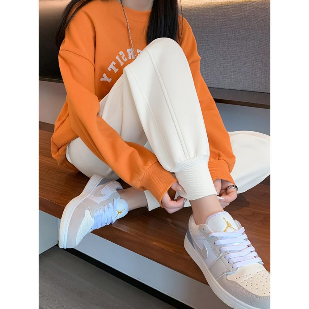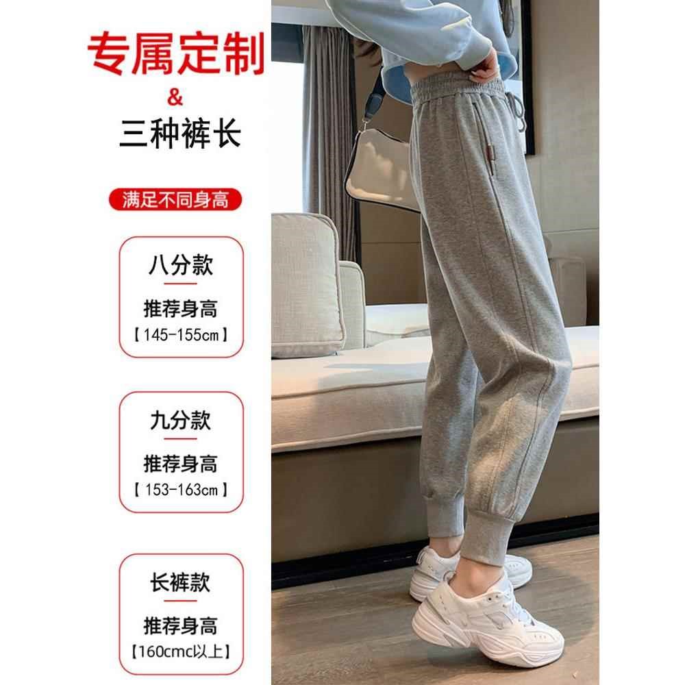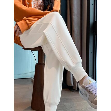 白色运动裤女秋季加绒加厚小个子哈伦裤高腰宽松休闲九分束脚卫裤