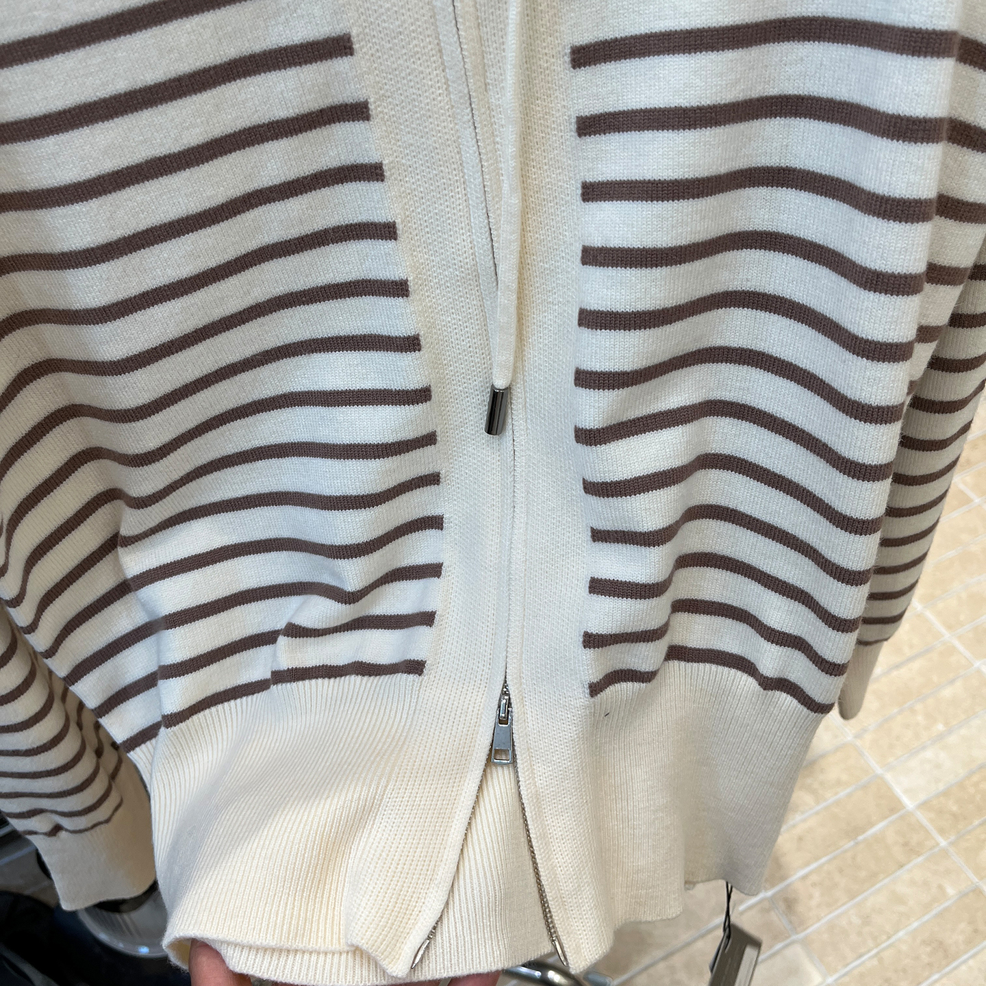 EVEN BETTER十三行女装2025新款韩系条纹连帽卫衣女拉链毛衣外套