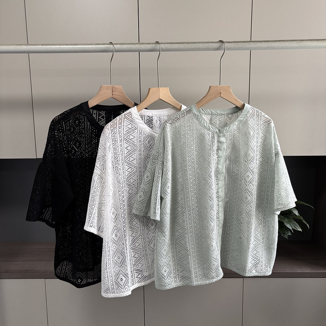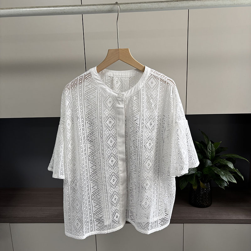 日系原D小众设计感钩花镂空短袖衬衫女休闲百搭单排扣宽松防晒衣