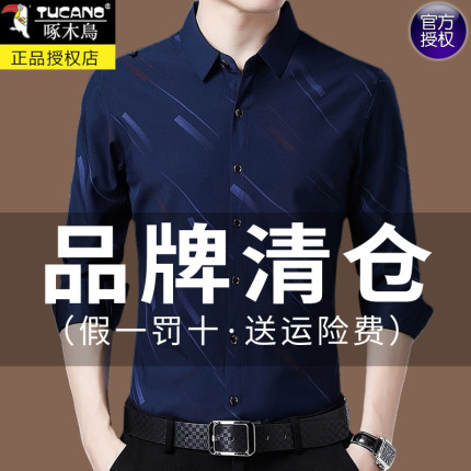 啄木鸟长袖衬衫男2025春秋款大码上衣休闲中年免烫商务男士衬衣潮