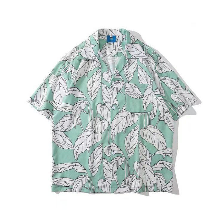日泰式古巴领清新花衬衫男港味12复古普吉岛沙滩宽松短袖衬衣情侣