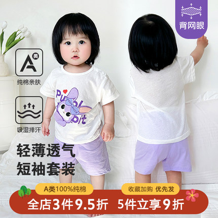 宝宝短袖套装夏季薄款两件套分体男童女童纯棉衣服短裤婴儿空调服