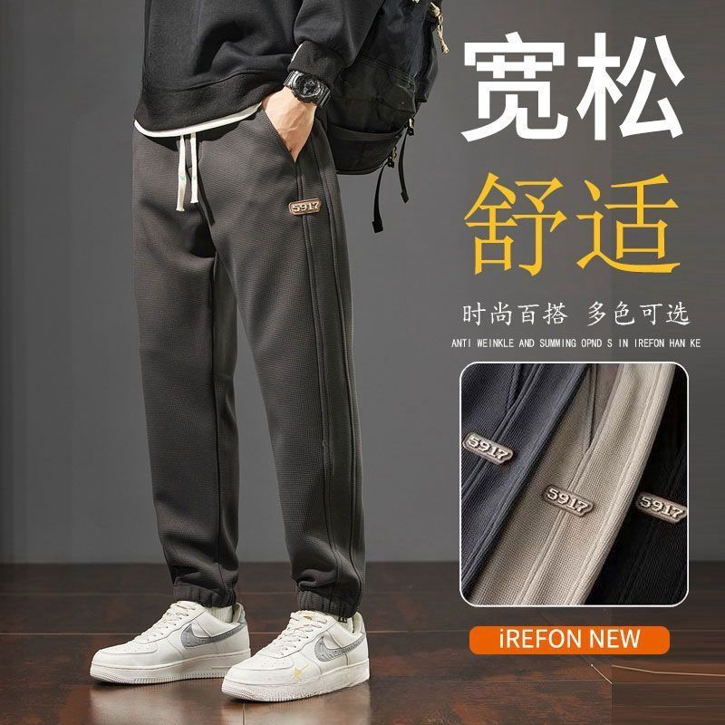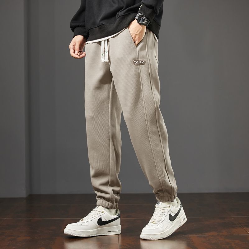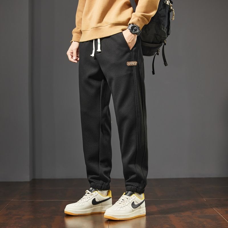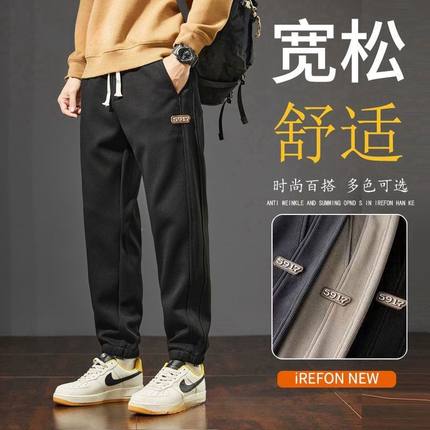 休闲卫裤男士秋冬季束脚松紧腰长裤2025新款加绒大码潮牌运动裤子