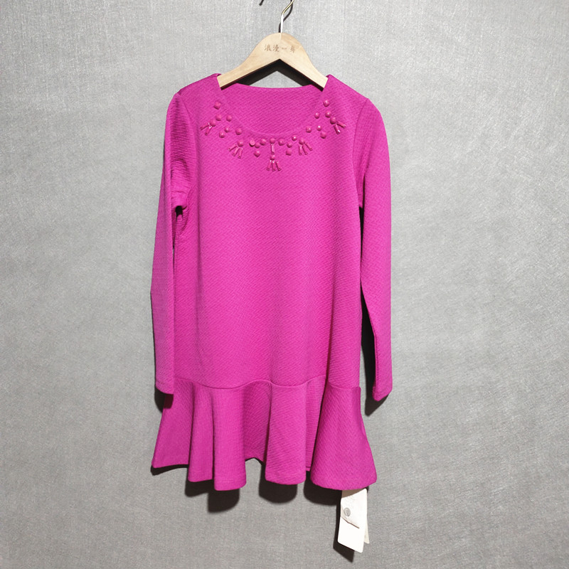 RMEO/浪漫一身秋季女长袖针织套头连衣裙中腰圆领织锦通勤荷叶边