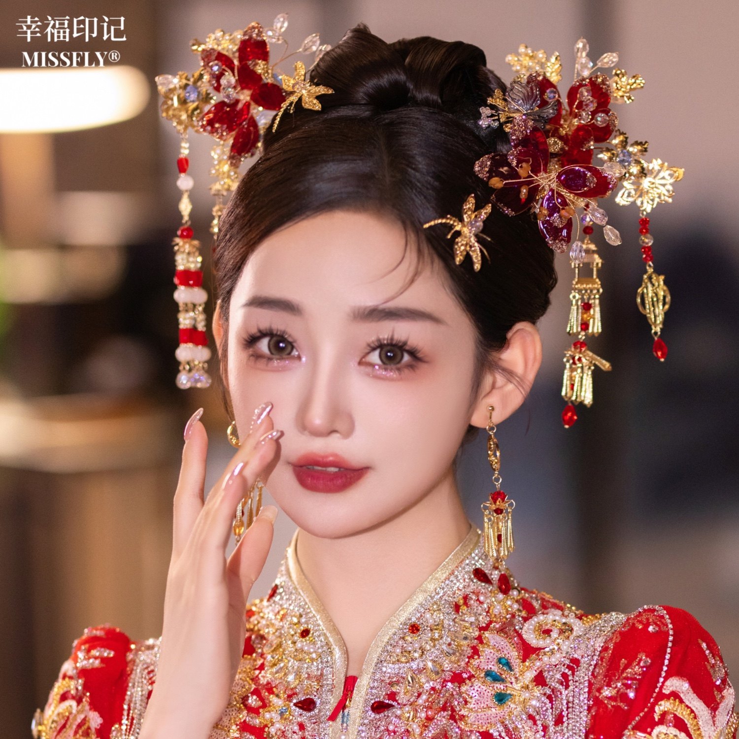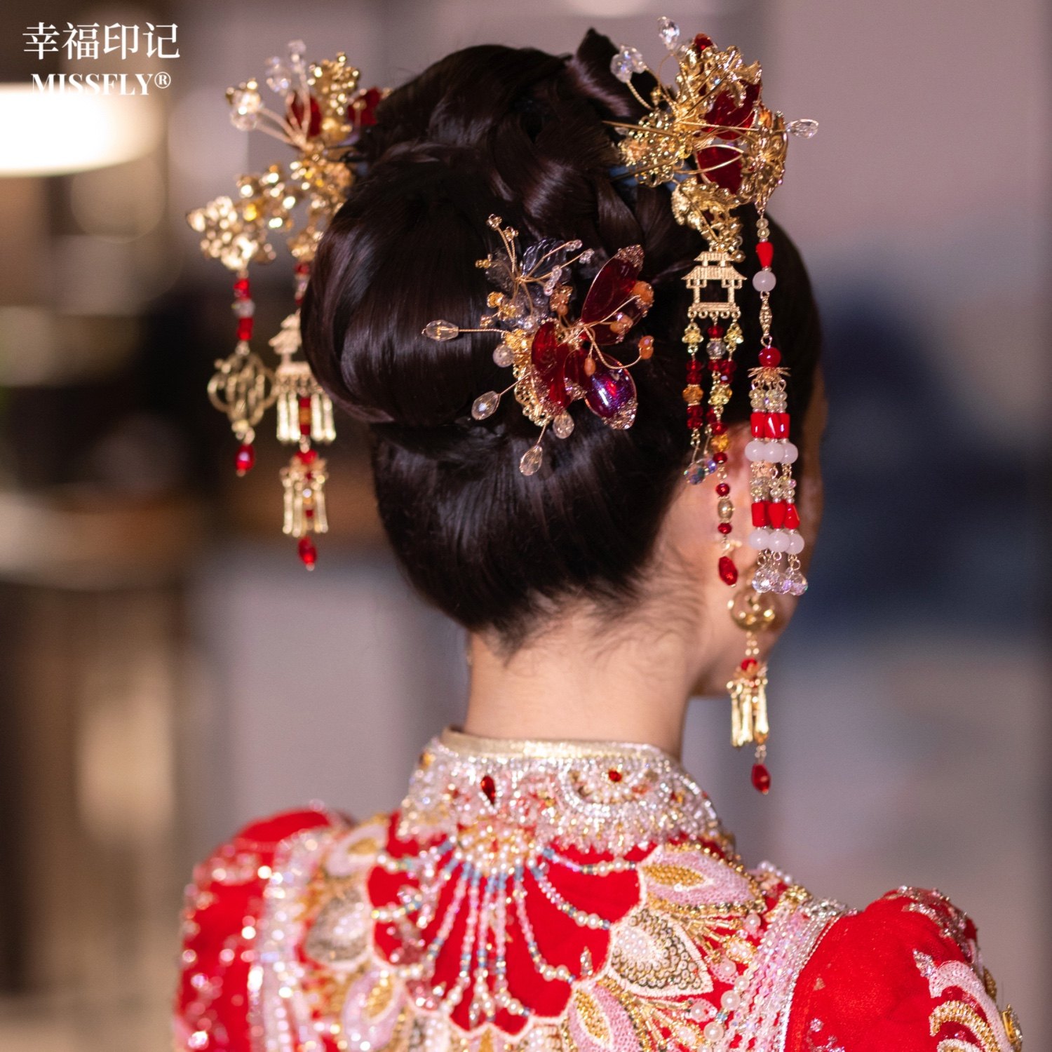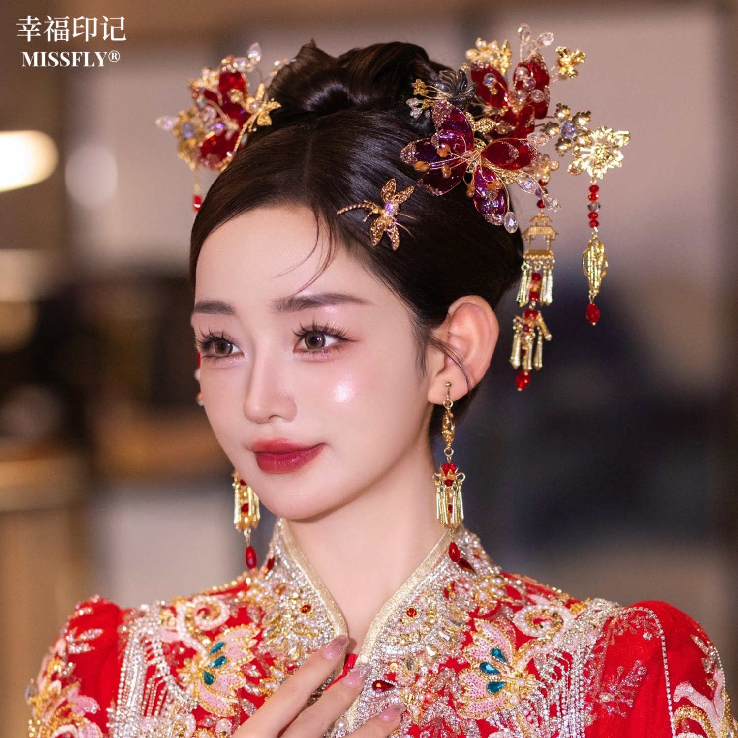 红色秀禾发饰分体套装新娘新中式旗袍龙凤褂头饰减龄甜美喜庆大气