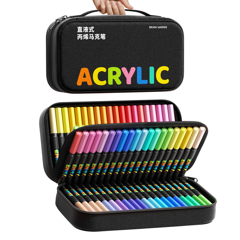 恩米小黑盒直液式软头丙烯马克笔80色60色美术生专用画笔不透色可叠色水性小学生儿童无毒可水洗幼儿园水彩笔