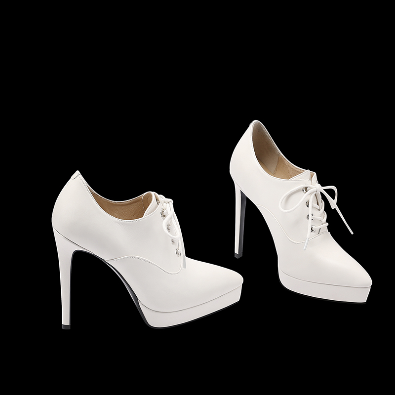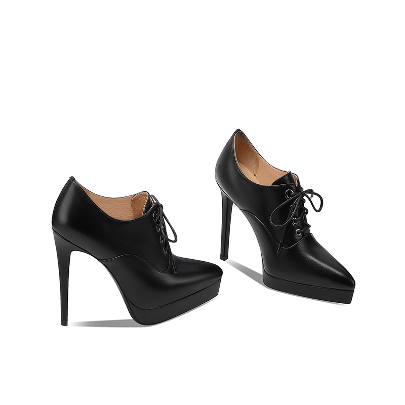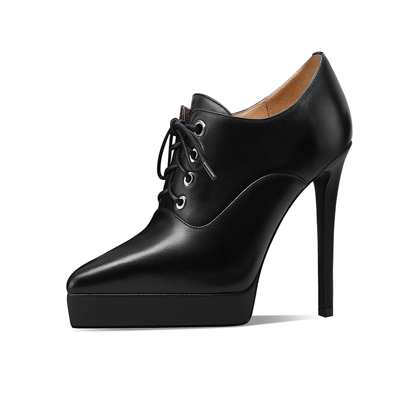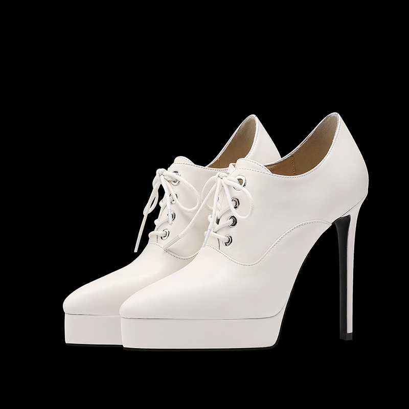 辣妹款12CM超高跟深口单鞋女细跟系带春秋真皮防水台恨天高高跟鞋