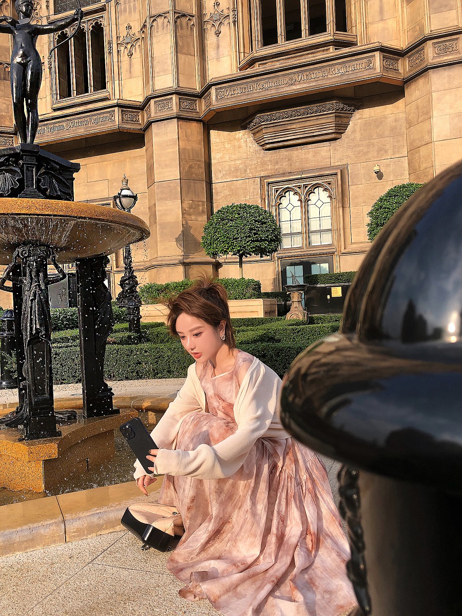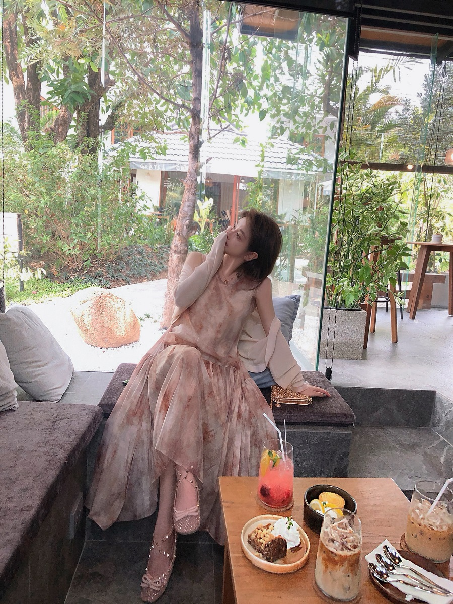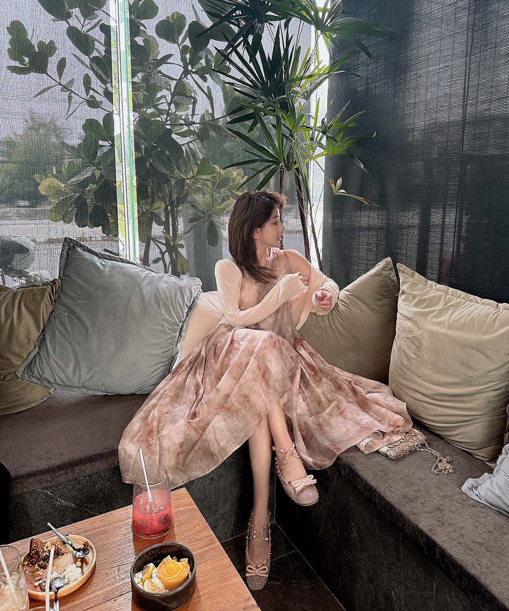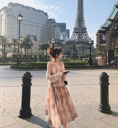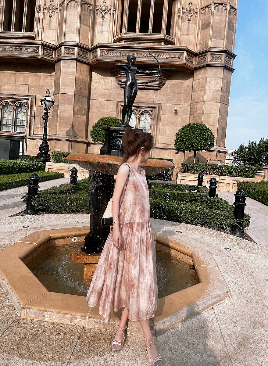 醋酸油画晕染背心长裙