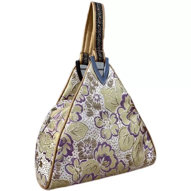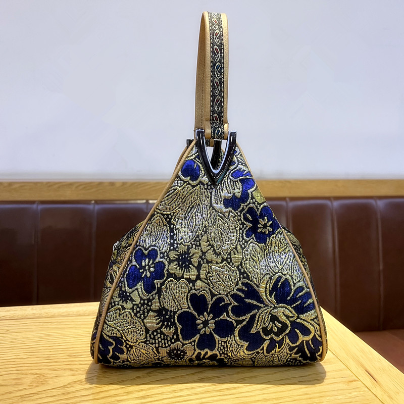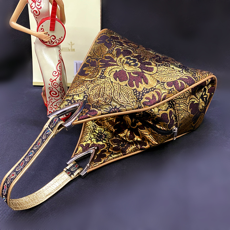 中国凤古典特色锦缎丝绸金丝三角手提包拎包送老外礼品手腕包旗袍