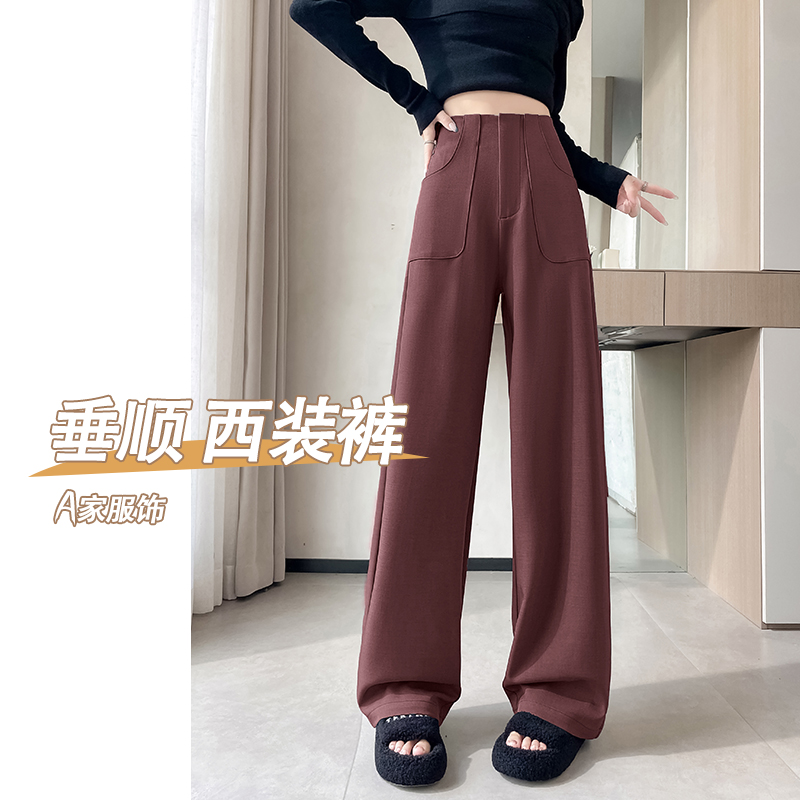 黑色阔腿裤女秋冬2025新款小个子高腰垂感休闲直筒拖地西装裤长裤