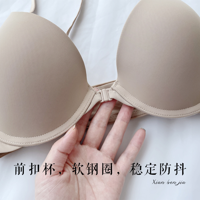 光面性感内衣无痕软钢圈上托防下垂舒适薄款前扣美背文胸裸感胸罩