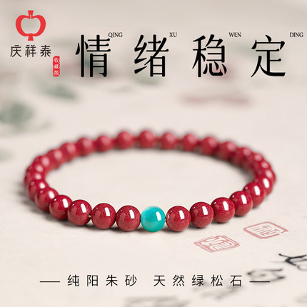 庆祥泰高纯度朱砂手串女款正品官方旗舰店男天然民族风绿松石手链