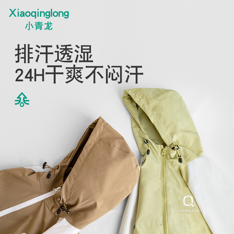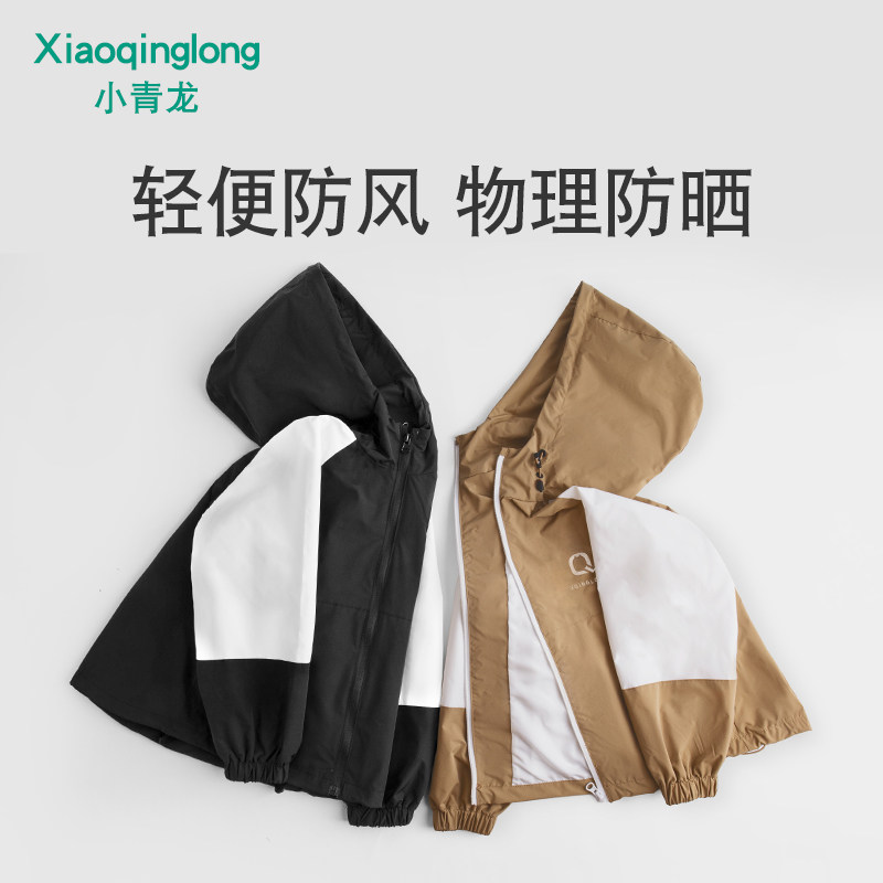 小青龙春装新款儿童外套男童女童轻薄上衣中大童连帽拼色风衣童装
