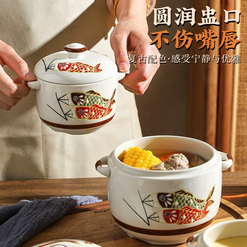 陶瓷小炖盅隔水炖家用带盖瓦罐汤盅蒸鸡蛋羹专用碗蒸盅蒸碗和风