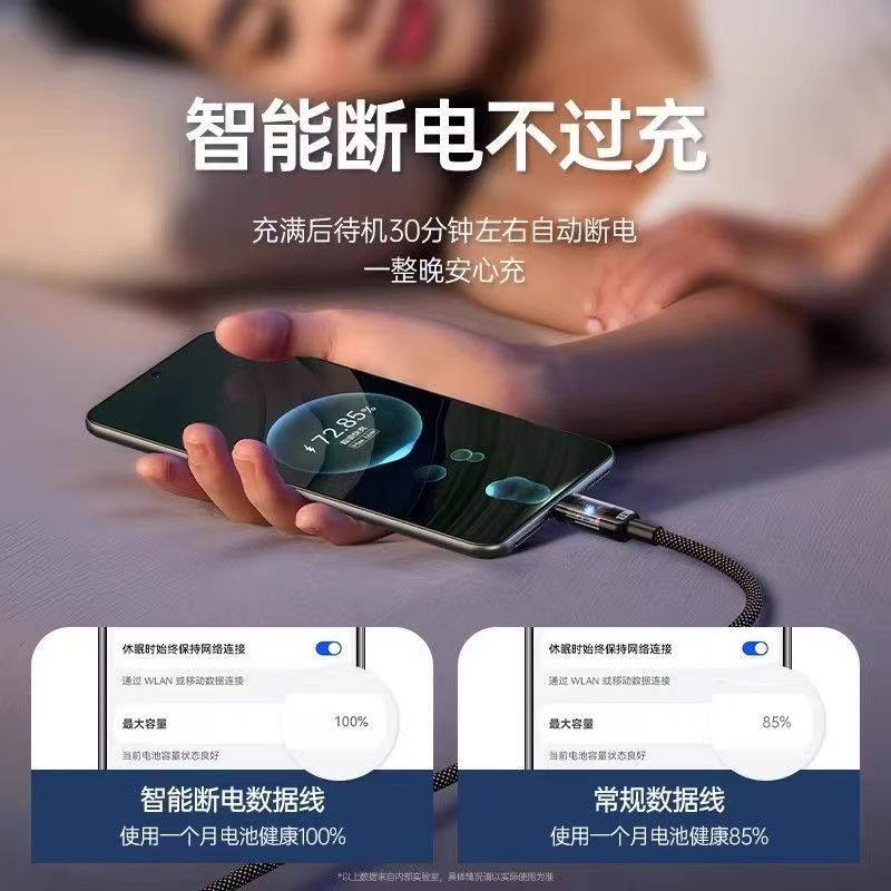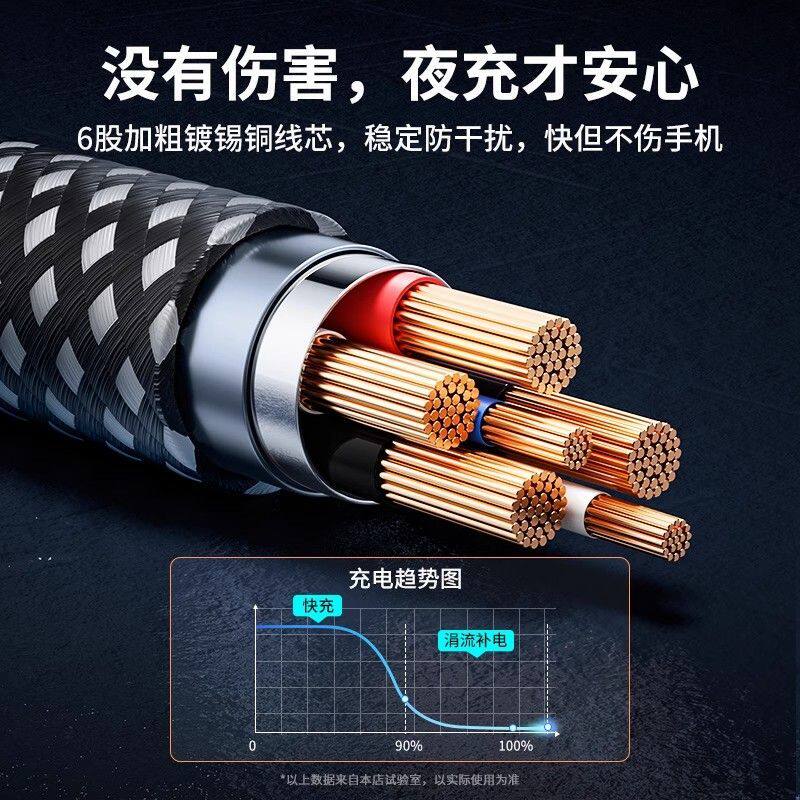 自动断电6A数据线Typec快充适用充电线华为vivo小米oppo手机数据线超级充电器线安卓100W超级快充防过充断电