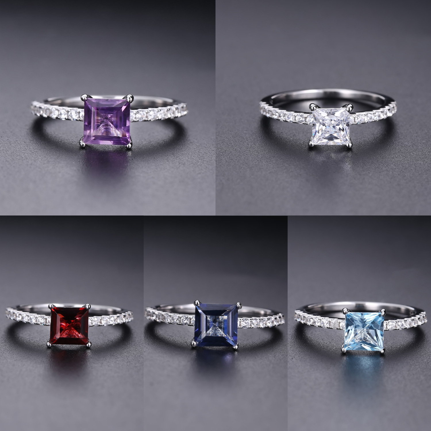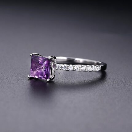 时尚轻奢S925银精工镶嵌简约天然彩宝紫水晶托帕石高颜值纯银戒指