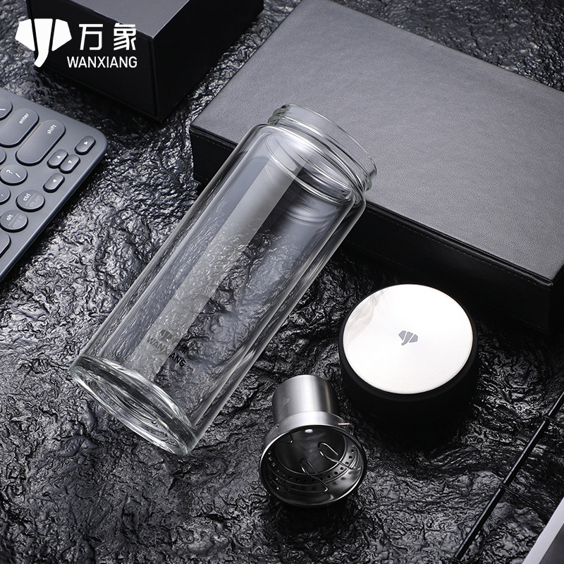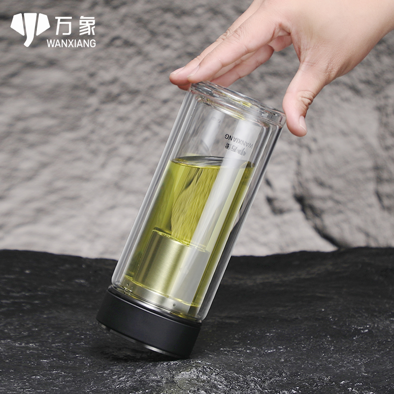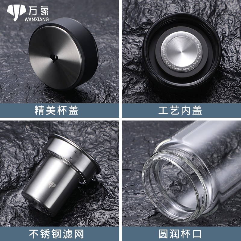 万象双层玻璃杯男士 泡茶杯 高档商务办公杯 大容量 车载便携耐热