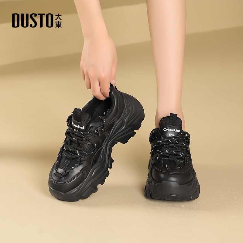 大东老爹鞋女鞋2025秋季新款时尚运动平底高跟系带圆头拼接Q0205
