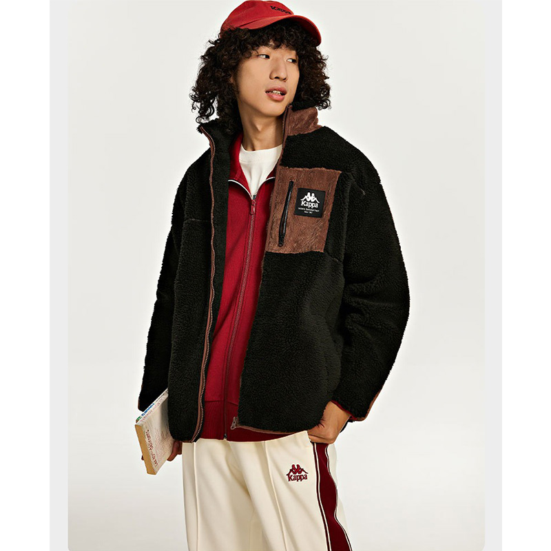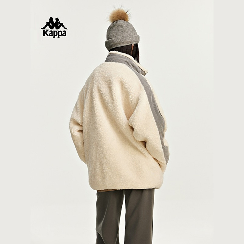 Kappa卡帕男装女装夏季新款羊羔绒撞色立领外套K0DZ2JJ90D