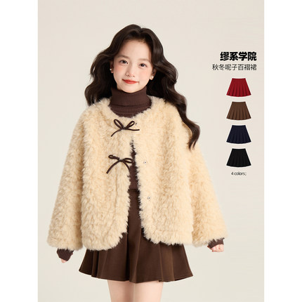 Amybaby女童裙子冬季2025新款潮流加厚呢子百搭百褶半身裙A字裙
