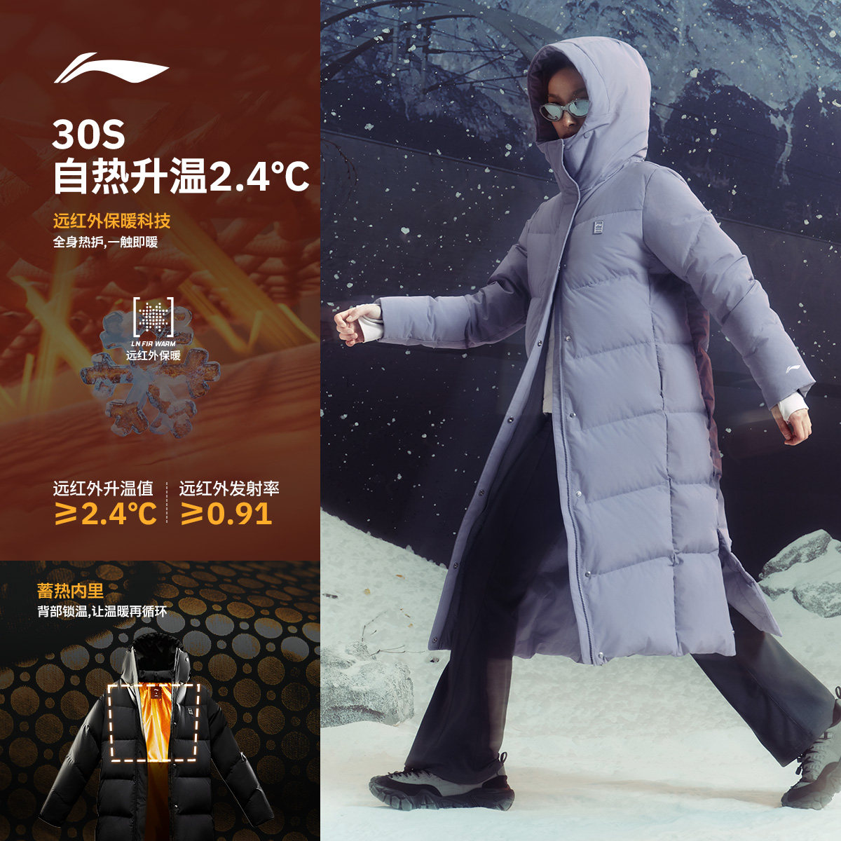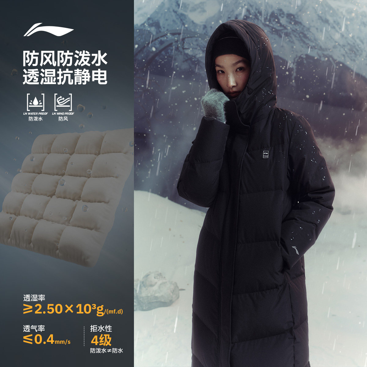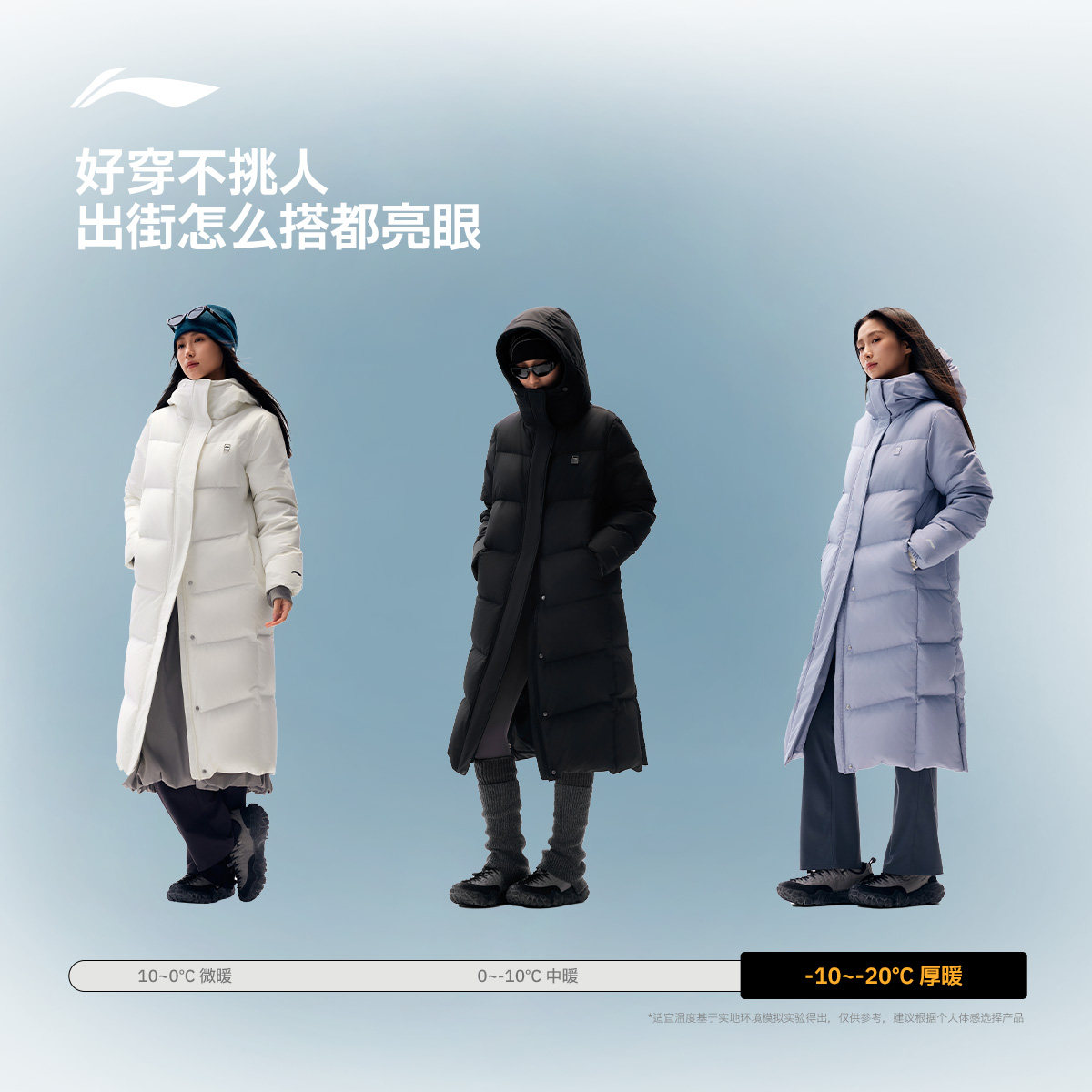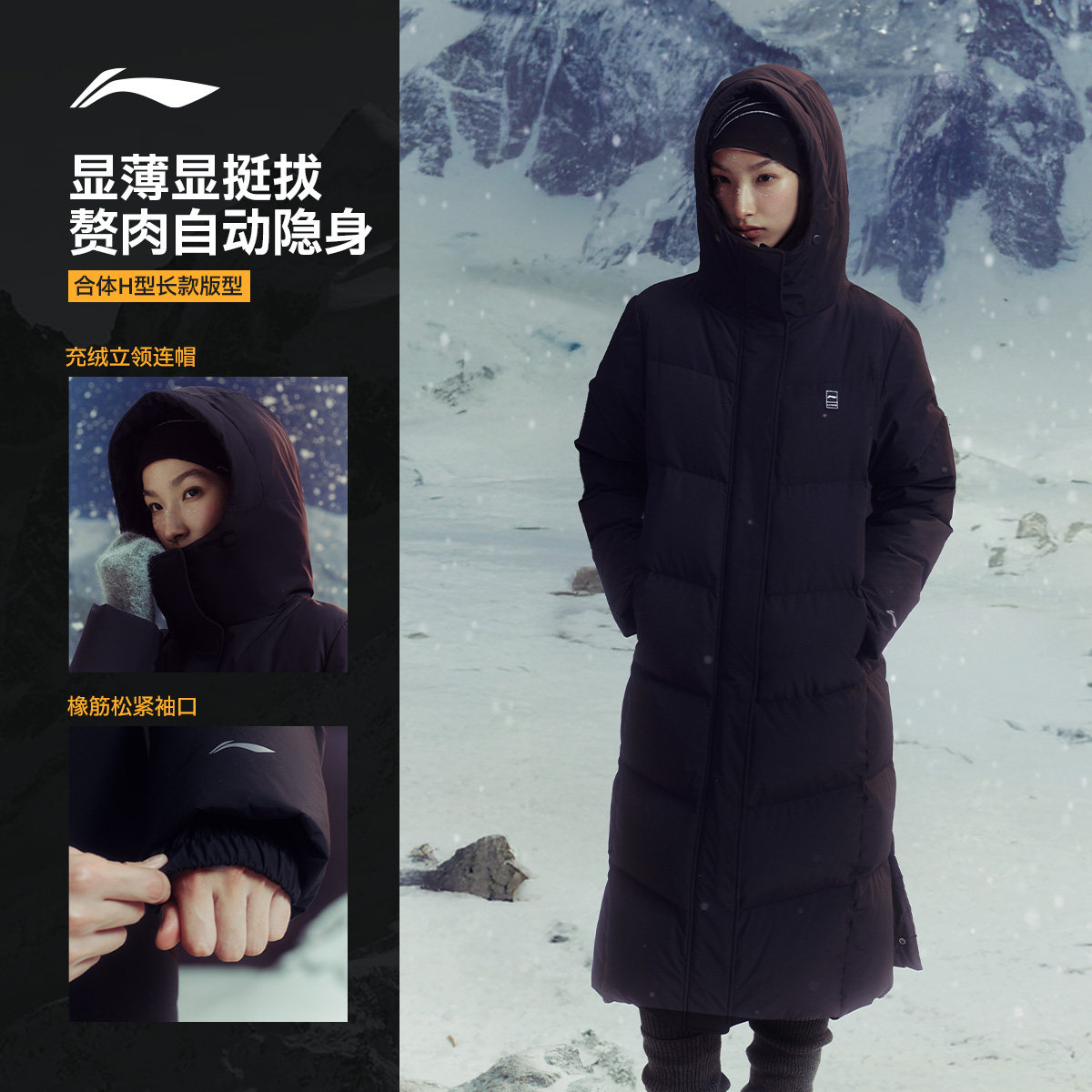李宁火锅羽绒服丨女冬季鸭绒长款上衣保暖加厚衣服连帽运动外套女