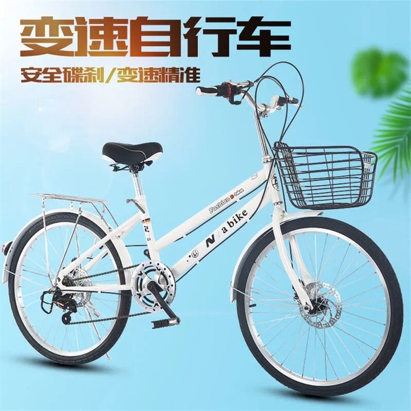 实心胎自行车男女式减震碟煞变速24/26寸城市代步通勤学生单车