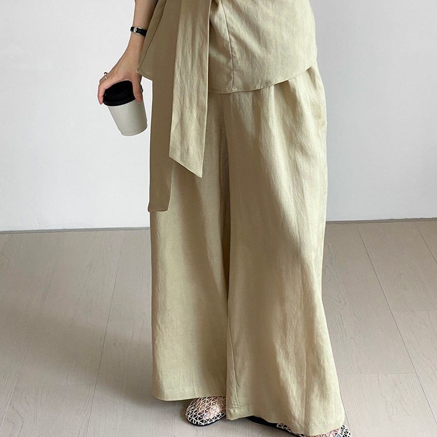 现货时尚穿搭套装韩系夏季新款绑带无袖衬衫宽松阔腿裤薄款两件套