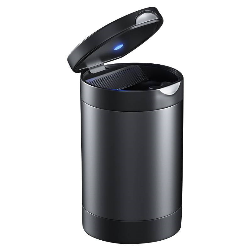 烟灰缸车载防飞灰高级感金属v多功能汽车用烟缸带盖带灯车内内装