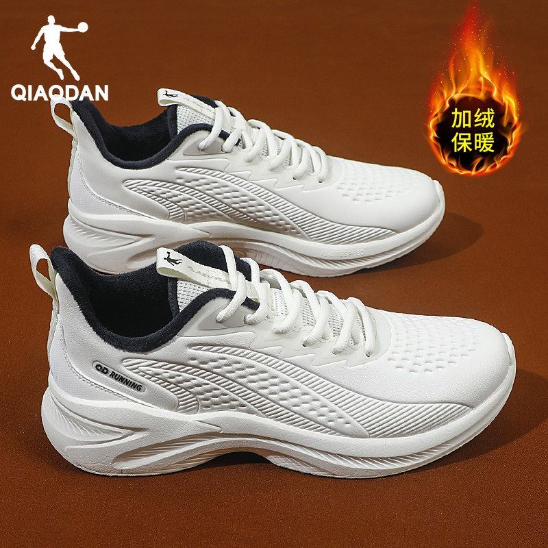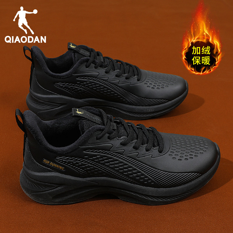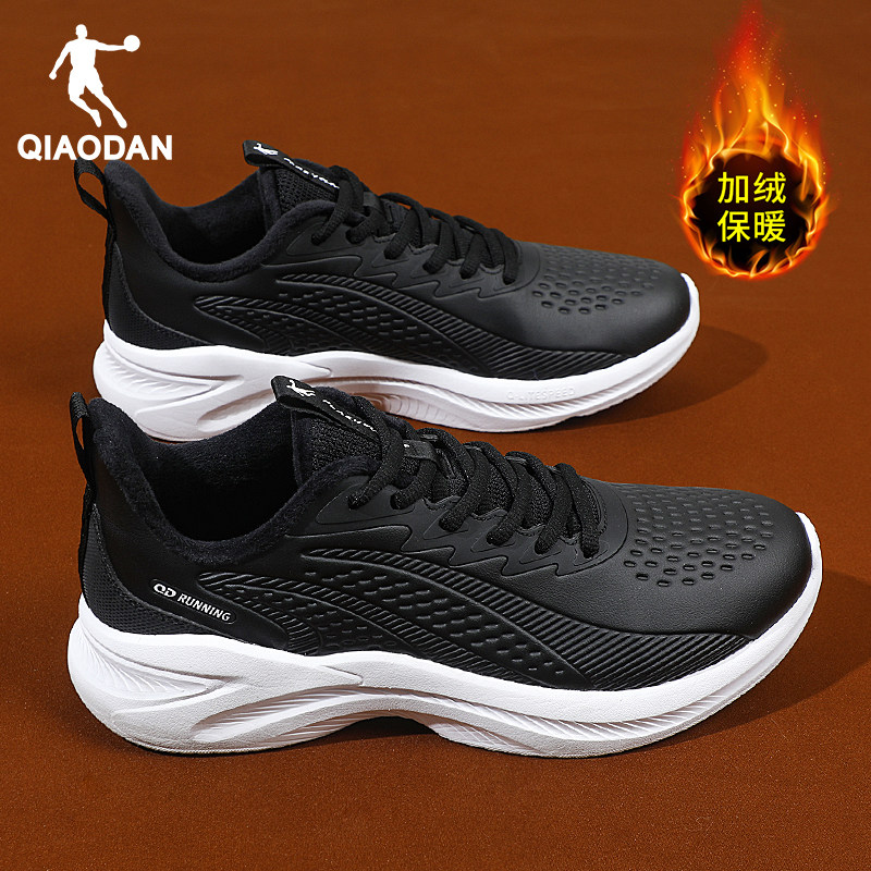 乔丹跑鞋男鞋皮面防水运动鞋男士冬季加绒棉鞋男生专业减震跑步鞋