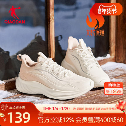乔丹冬季加绒运动鞋跑步鞋女款减震轻便2026新款皮面防水二棉棉鞋