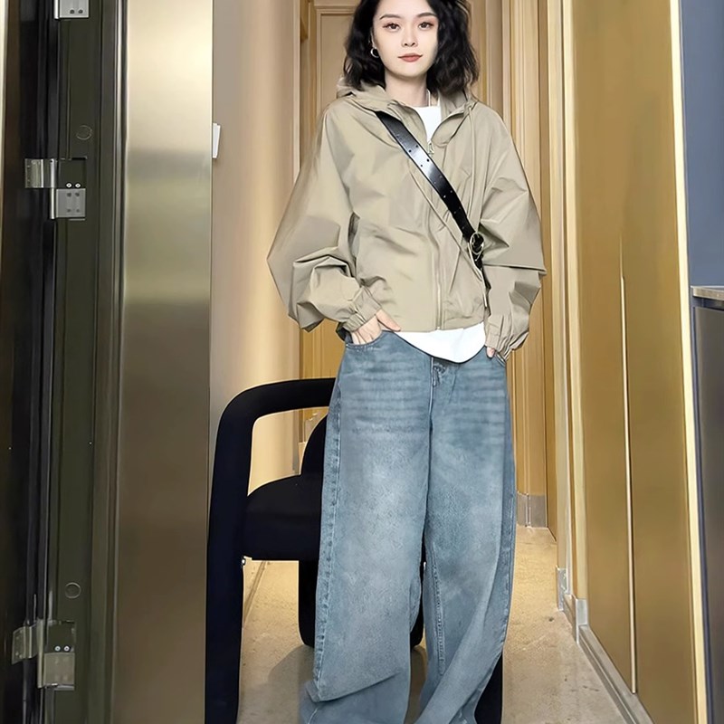 美式高街短款连帽冲锋衣女2024年春秋新款宽松休闲百搭夹克风衣