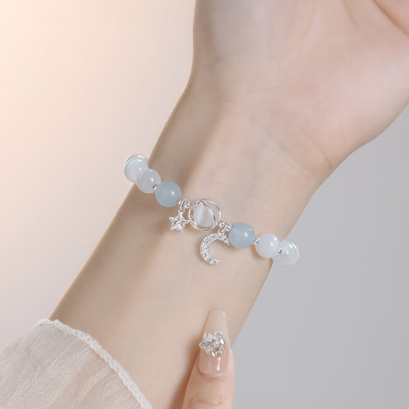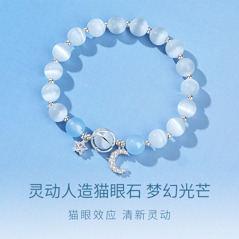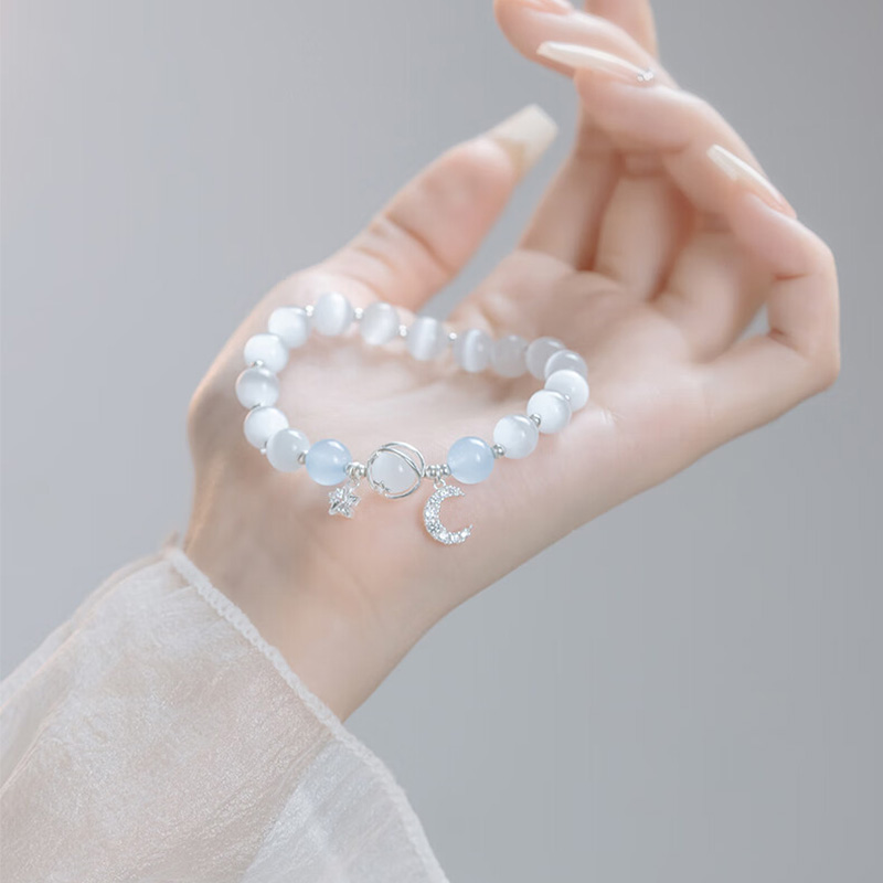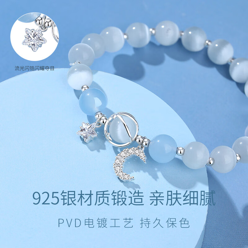 星月海蓝宝手链女纯银轻奢小众精致2025新款水晶猫眼手串生日礼物