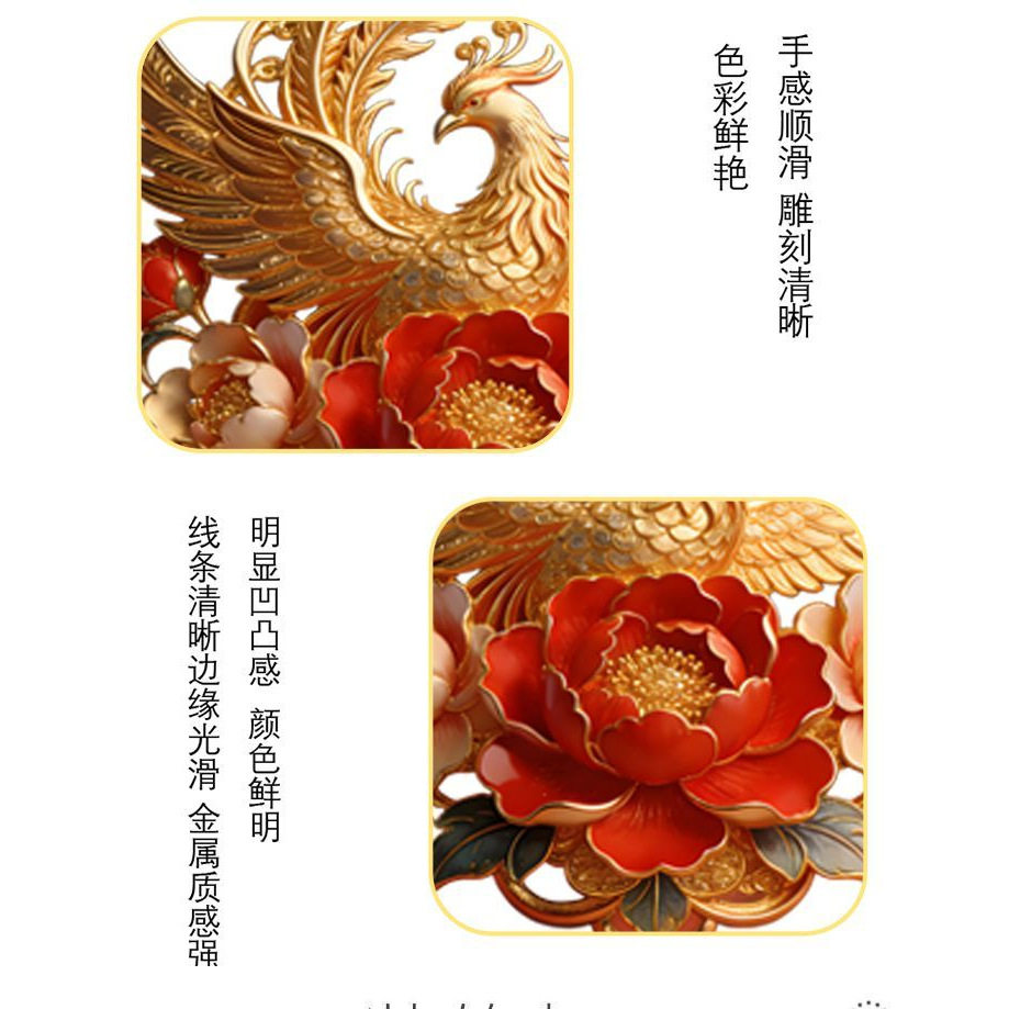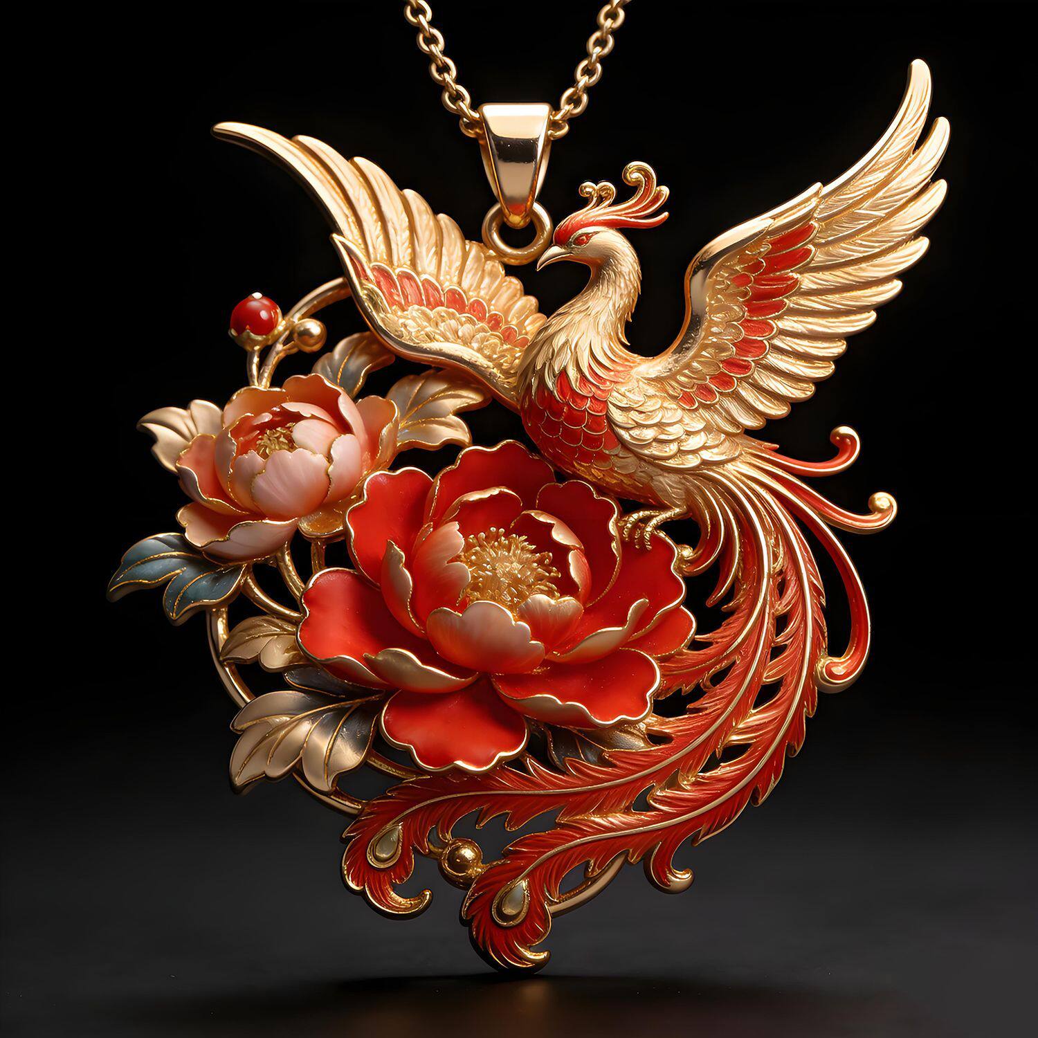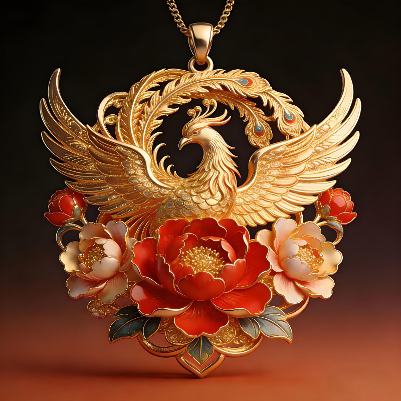 【富贵呈祥】金凤芙蓉圆牌吊坠黄金色项链手工时尚精美新年礼物女