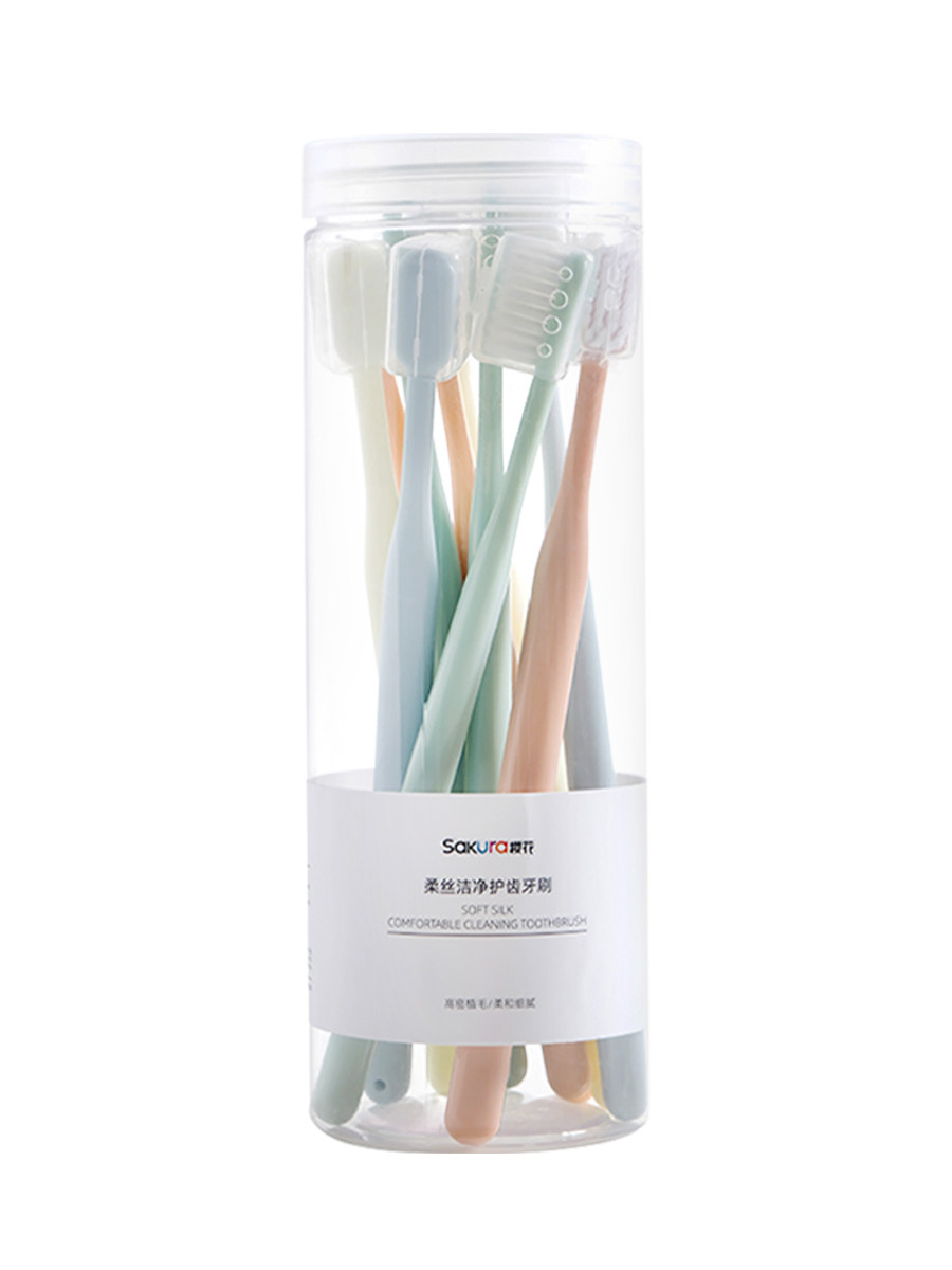 樱花软毛牙刷细密简约马卡龙手动清洁成人情侣款便携式家庭装家用