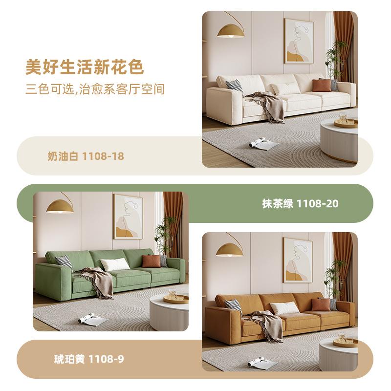 吉与布艺沙发北欧简约现代小户型客厅直排三人位奶油风豆腐块沙发