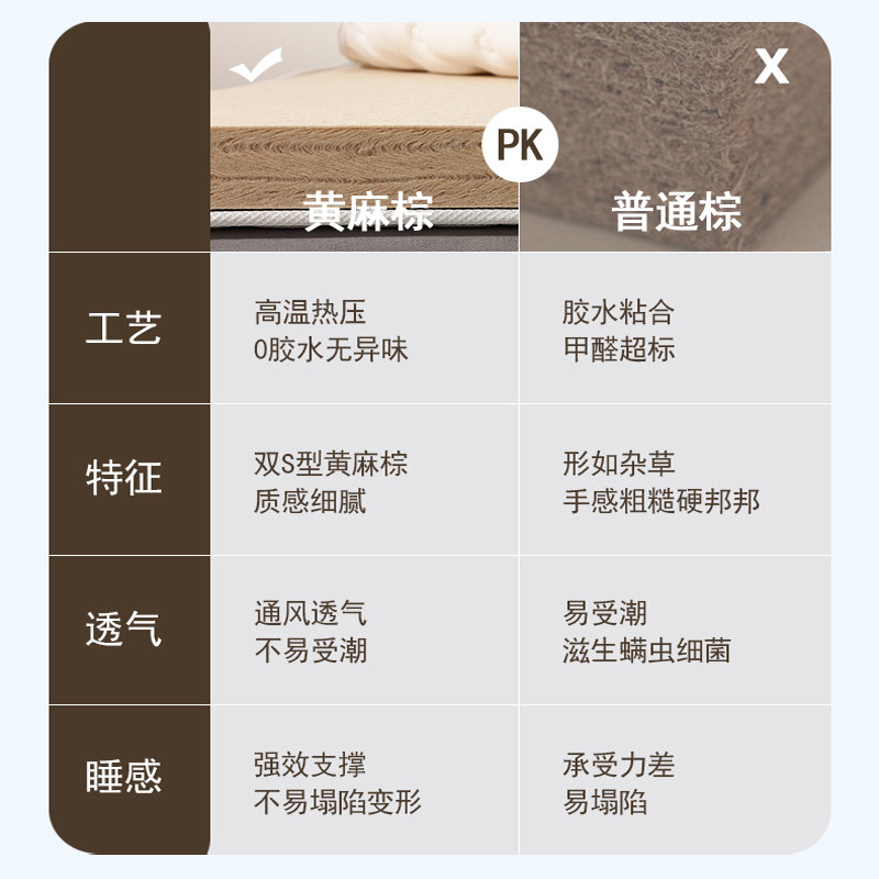 s型黄麻床垫天然棕垫儿童老人护脊椎偏硬榻榻米薄款棕榈家用乳胶