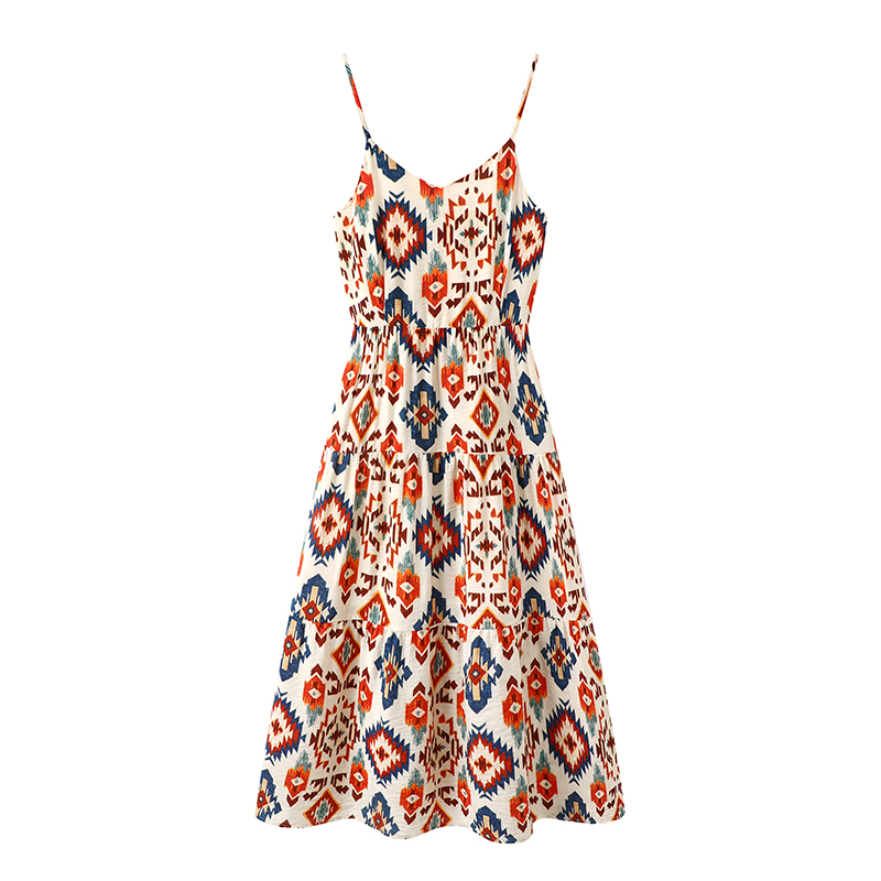 拉夏贝尔/La Chapelle法式民族风碎花连衣裙女夏新款显瘦背心裙